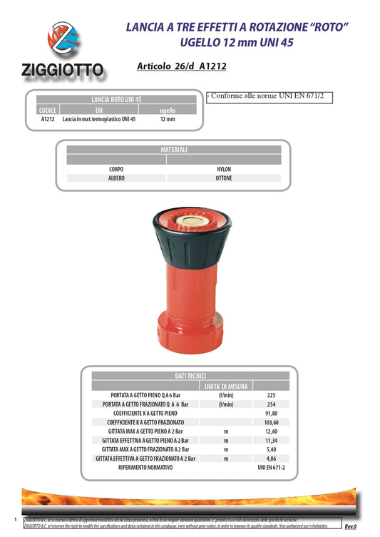 LANCIA A TRE EFFETTI PER MANICHETTA ANTINCENDIO ROTAZIONE "ROTO" (Art.26/d)