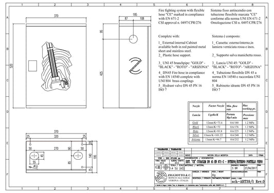 CASSETTA ANTINCENDIO IDRANTE DN45 MT20 MURO INT/EST VERNICIATA CUBASLIM COMPLETA